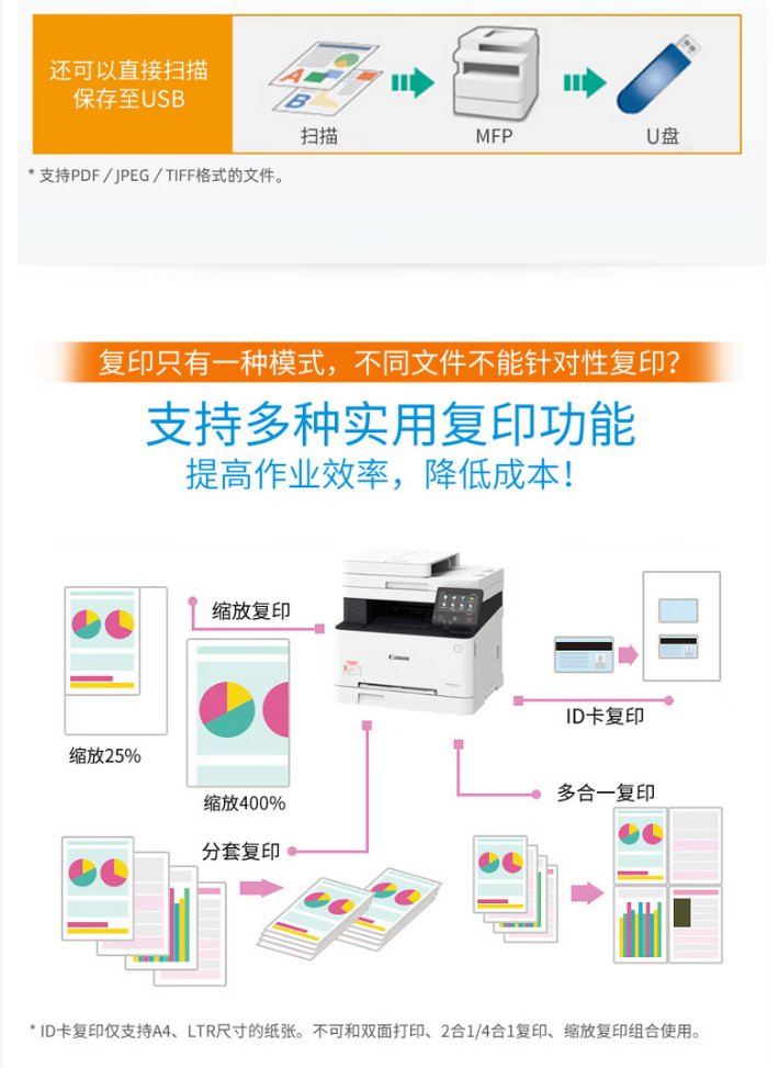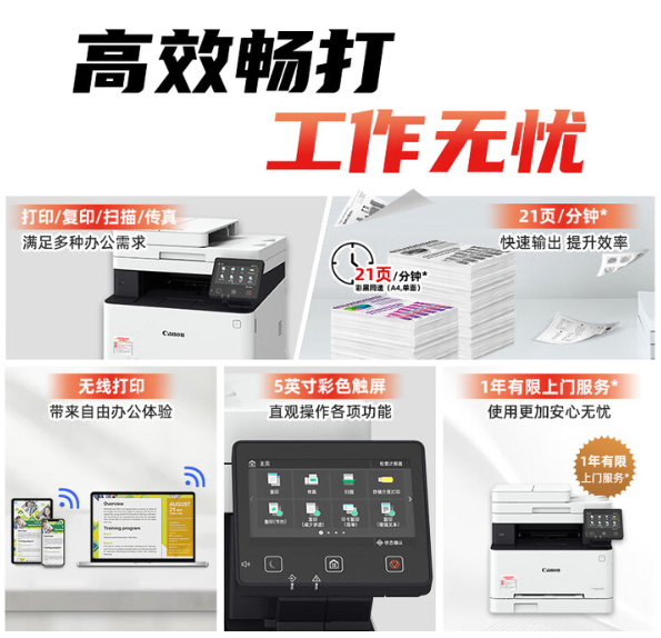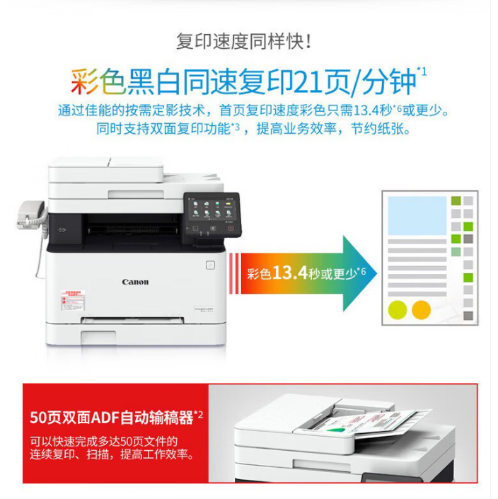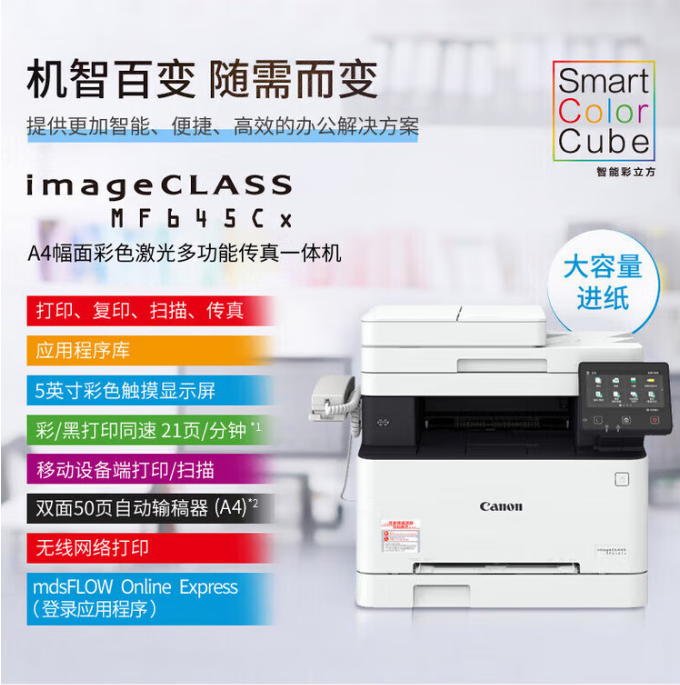 佳能/CANON iC MF645Cx A4 彩色打印机 无线彩色激光多功能传真一体机(打印/复印/扫描/传真/自动双面 家用/商用)